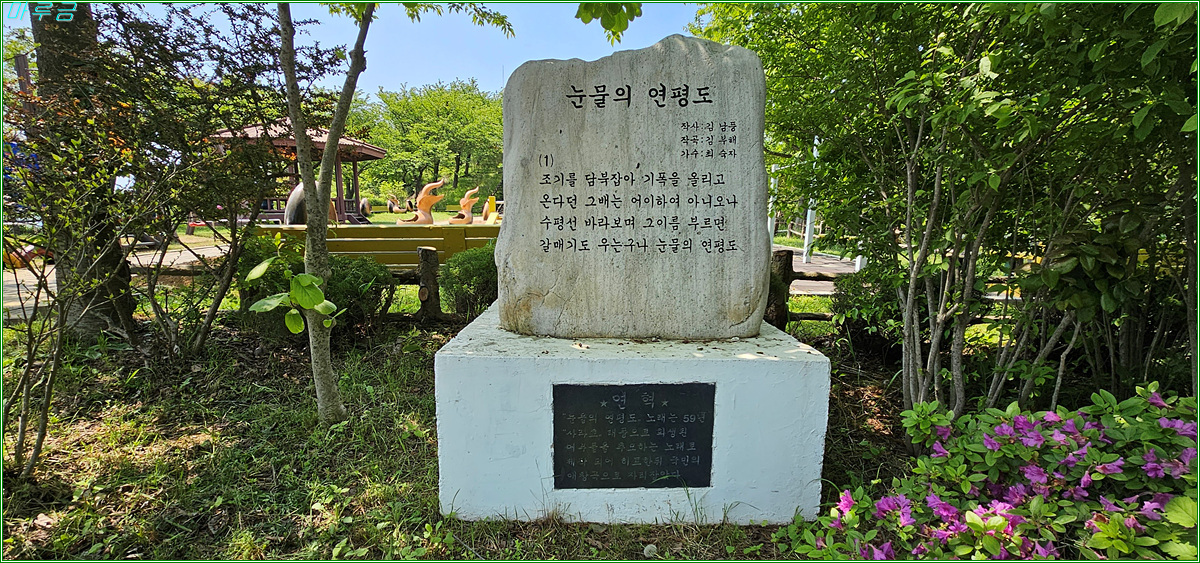 코스 : 당섬선착장~제1 연평해전 전승비~서해 5도 특별경비단~조기역사관~군터널~등대공원~평화공원~가래칠기해변~구리동해변 ~연평 평화전망대~고 서정우하사 모표~연평면 공설묘지~망향전망대~연평아파트~책섬~안보교육장~당섬선착장 ( 17.24km 4시간) ![]() |
